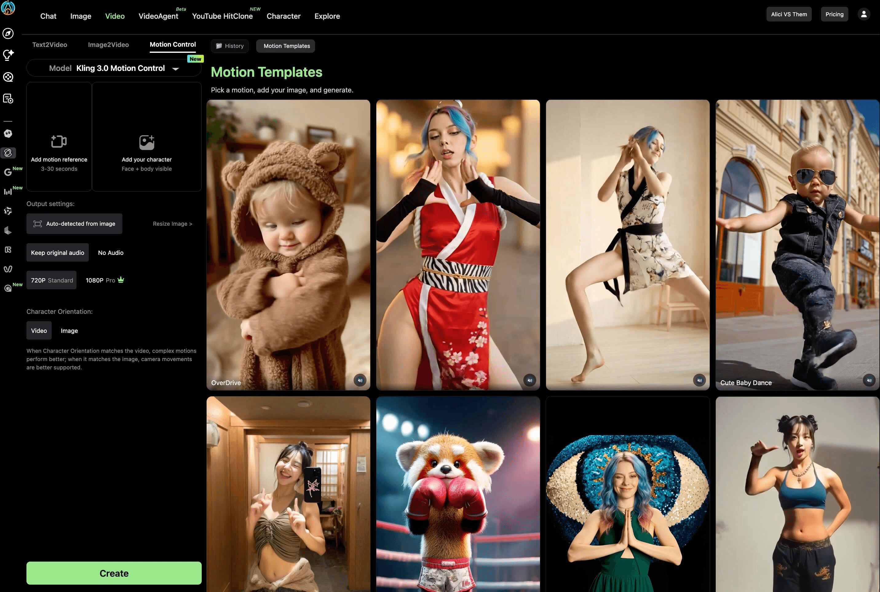 Go to Alici AI's Dance Generator or Video Studio