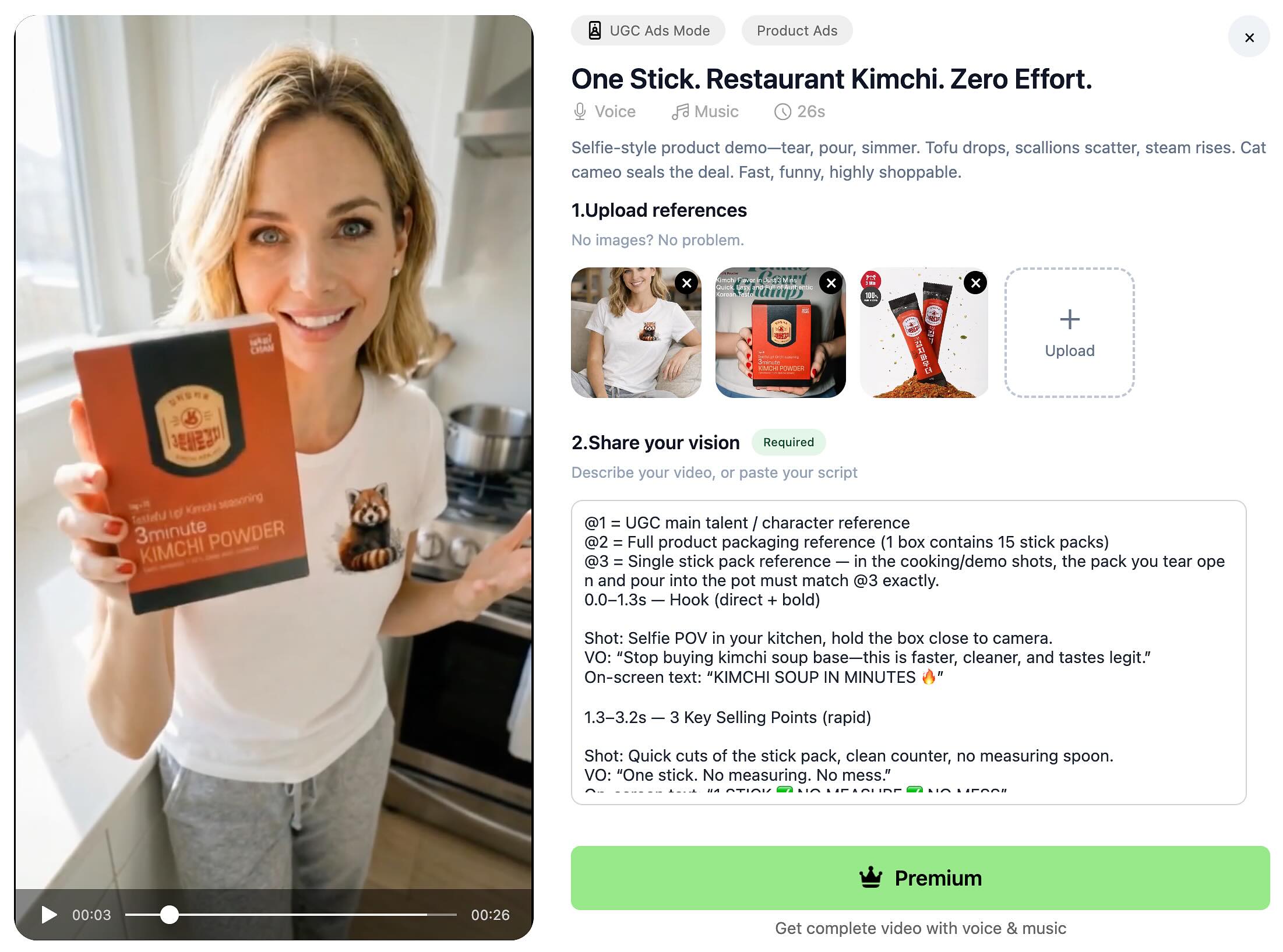 Generate hook options, VO scripts, and shot lists for different buyer personas