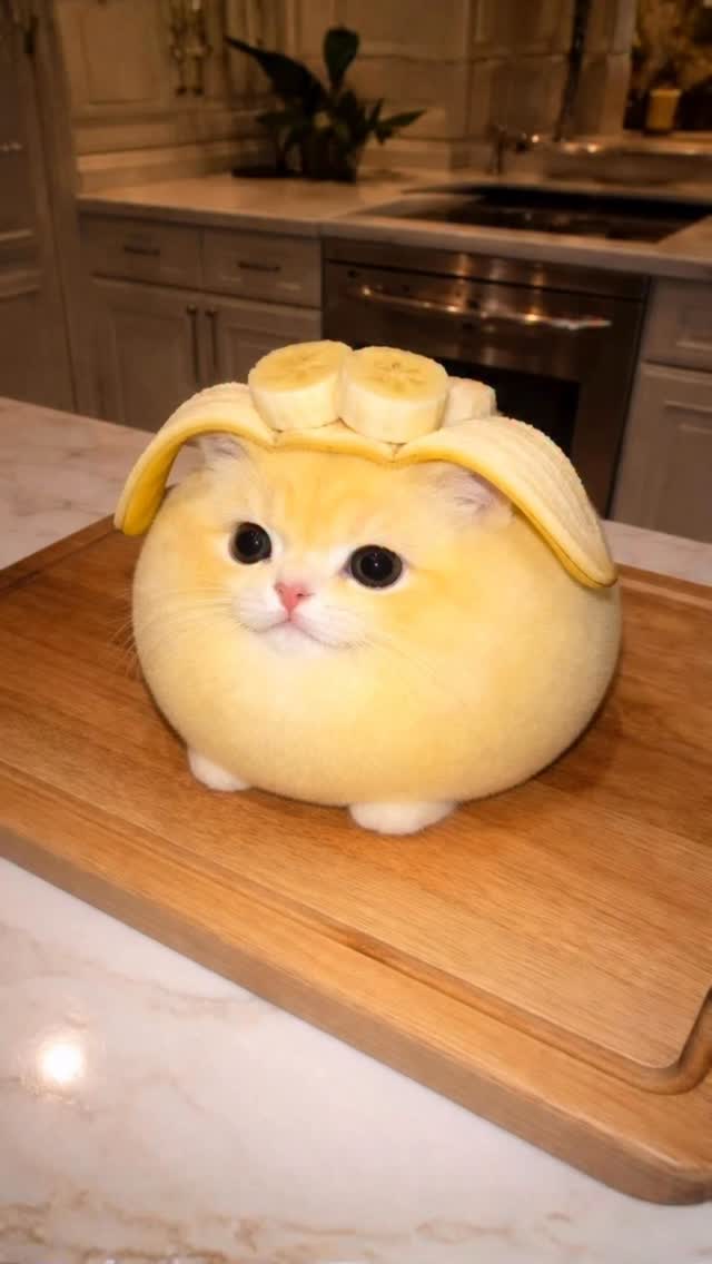 Freshly baked Banana Mochi Cat. 🐾🍌 The ultimate stress relief. #mochi #cute #surrealism