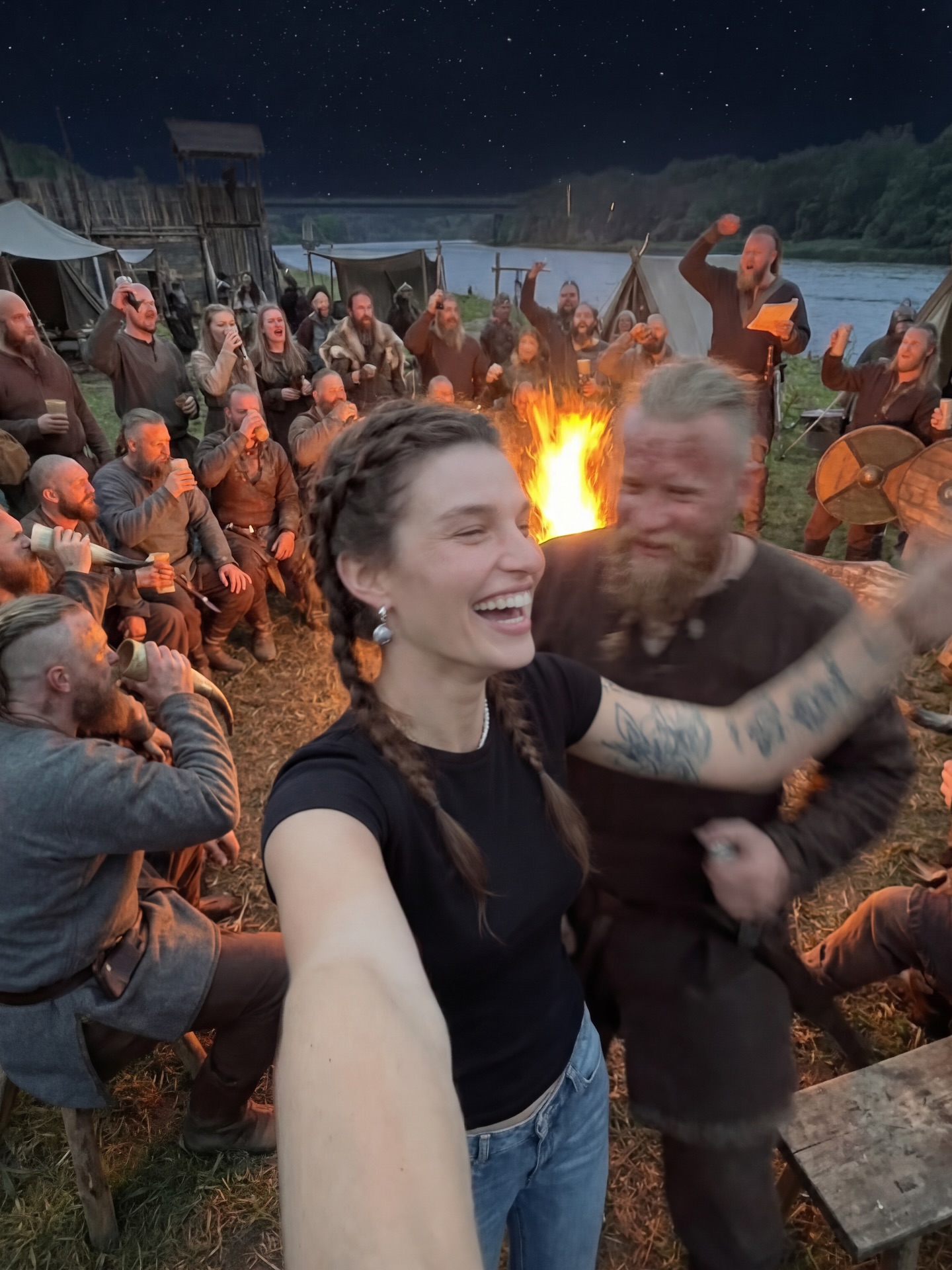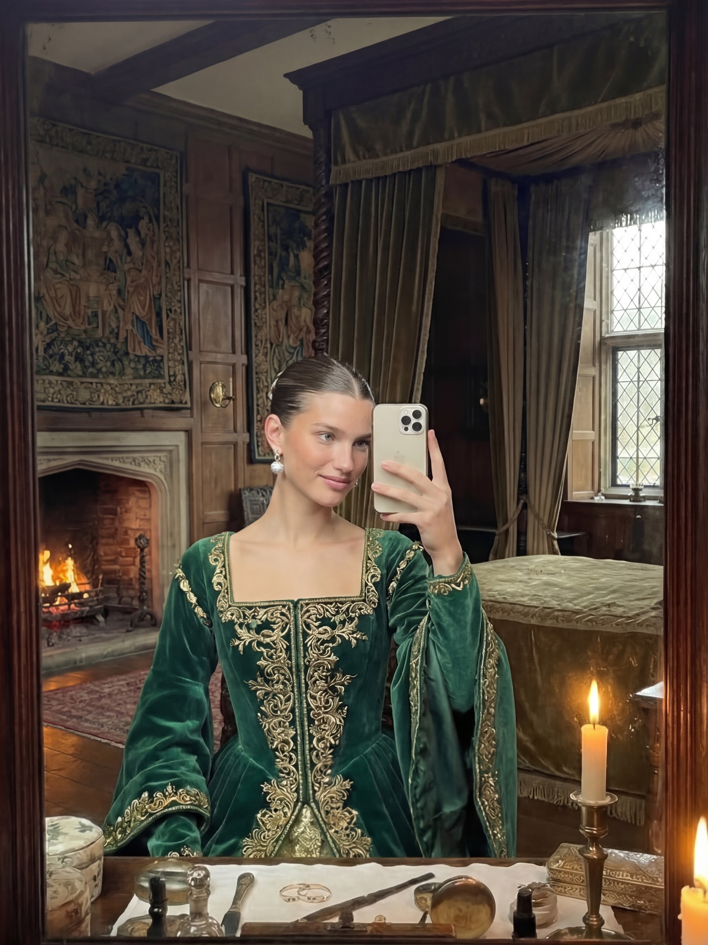 The caption about a “top secret” time machine matters because it gives the whole frame a playful narrative lens. Without that framing, the image would still be cozy, but with it, the scene becomes a soft roleplay of discovery. That combination is strong for social media. The photo stays approachable because the bed, lamp, cup, and messy bun feel familiar, while the old map introduces just enough fantasy to lift the scene above generic travel content.