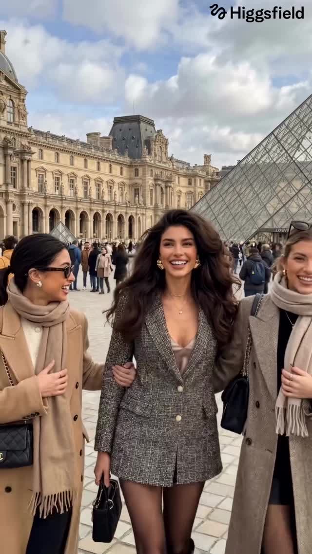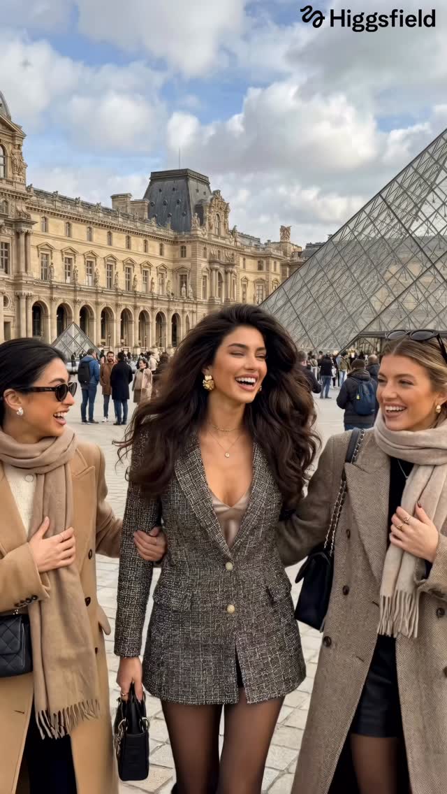The location cue (iconic architecture + pyramid) adds instant cultural recognition, which boosts save potential. People often save these frames for mood, travel inspiration, and outfit references simultaneously.