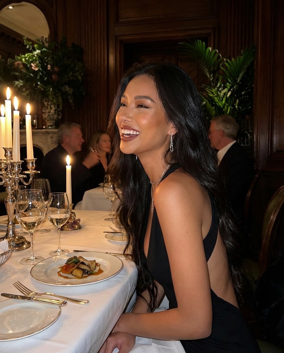 Caption cue: Digital dining 🥂 Fashion models and restaurant settings. Exploring pure digital world-building. Which one is your favorite? I teach you how to build stunning hyper-realistic AI vi. The visual language aligns with this cue through scene consistency and clean composition, which helps improve saves and profile click-through.