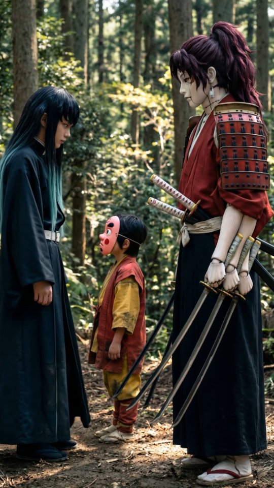 This reel plays like a compressed Japanese folk-horror short film. It begins with a child in a forest village setting, moves through illness and mourning inside a traditional wooden house, then transforms into a sword-bearing supernatural confrontation wrapped in white smoke and ritual tension.