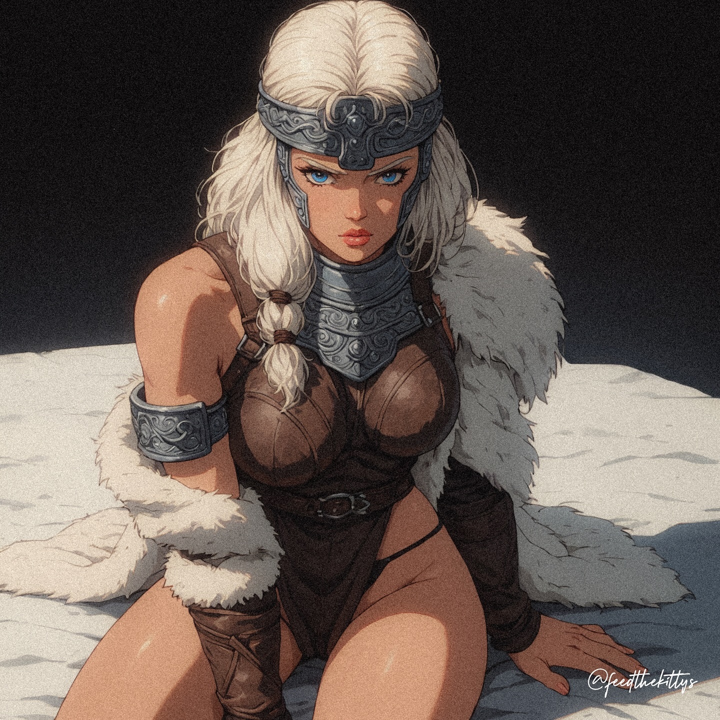 This image works because it understands that a face can carry an entire composition on its own. There is almost no environment, almost no story device, and almost no prop support. The whole image lives or dies on gaze, lighting, hair color, and skin rendering. In this case, that focus is exactly what makes it powerful.