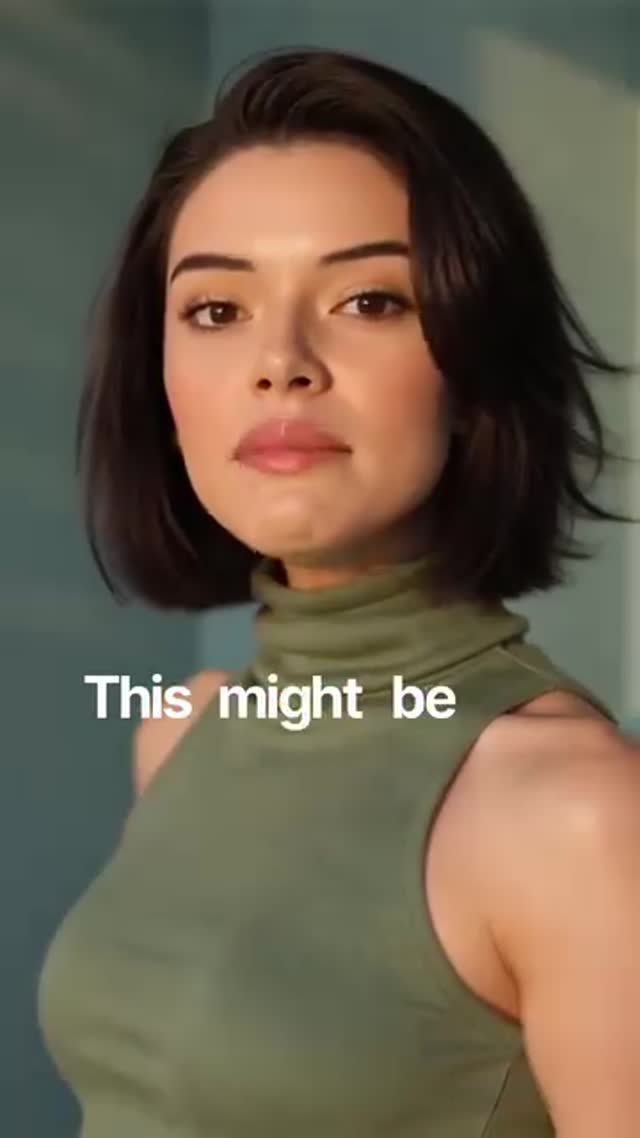 If using an AI video generator (like HeyGen or Kling), use a consistent character prompt: "Mid-20s woman, short dark bob, olive green sleeveless turtleneck, plain teal background, warm cinematic side lighting."