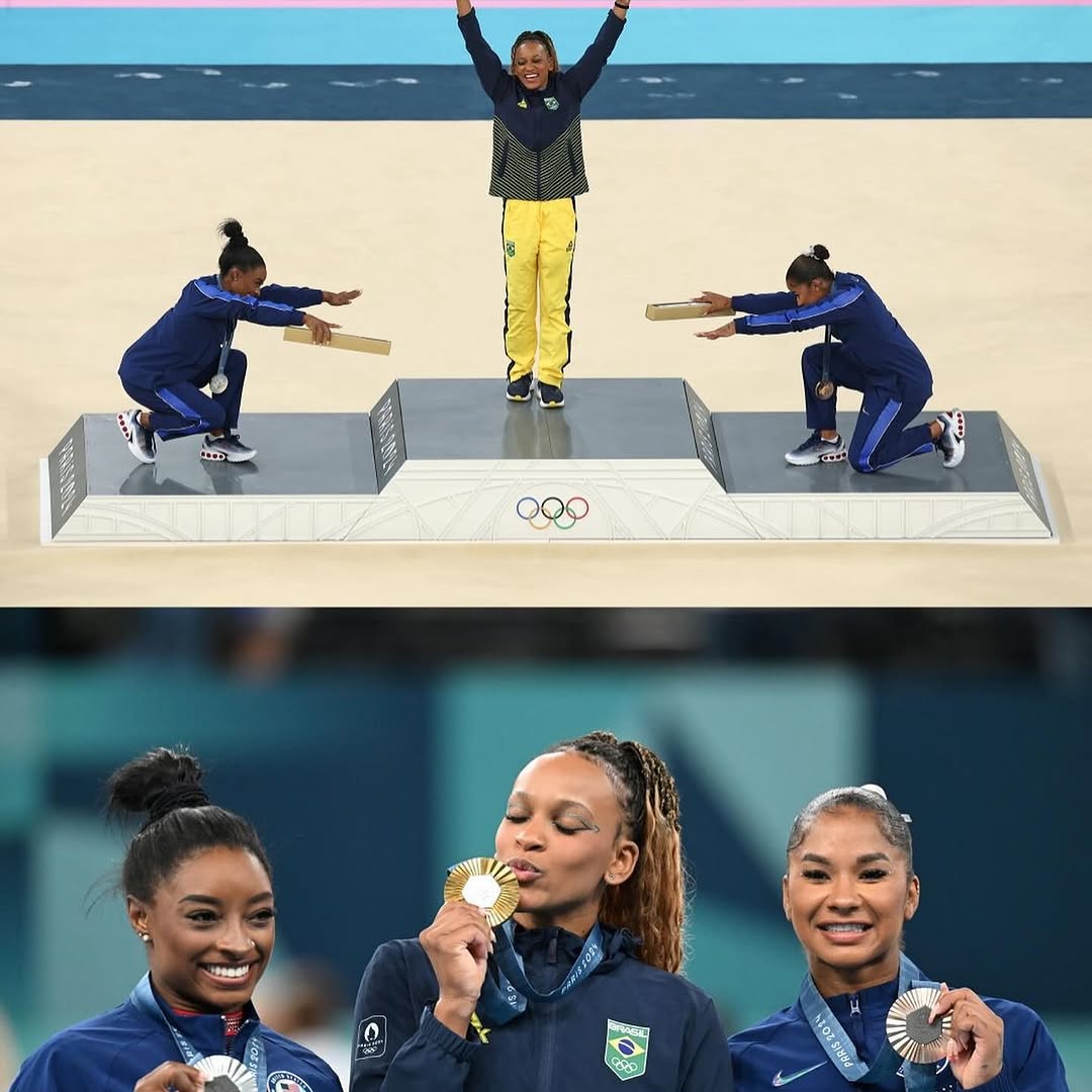 2. Rebecca Andrade, Simone Biles & Jordan Chiles <3 Giving us the first all-Black podium! This new-gen cuties teaching us humility, support, and love!! #winningright