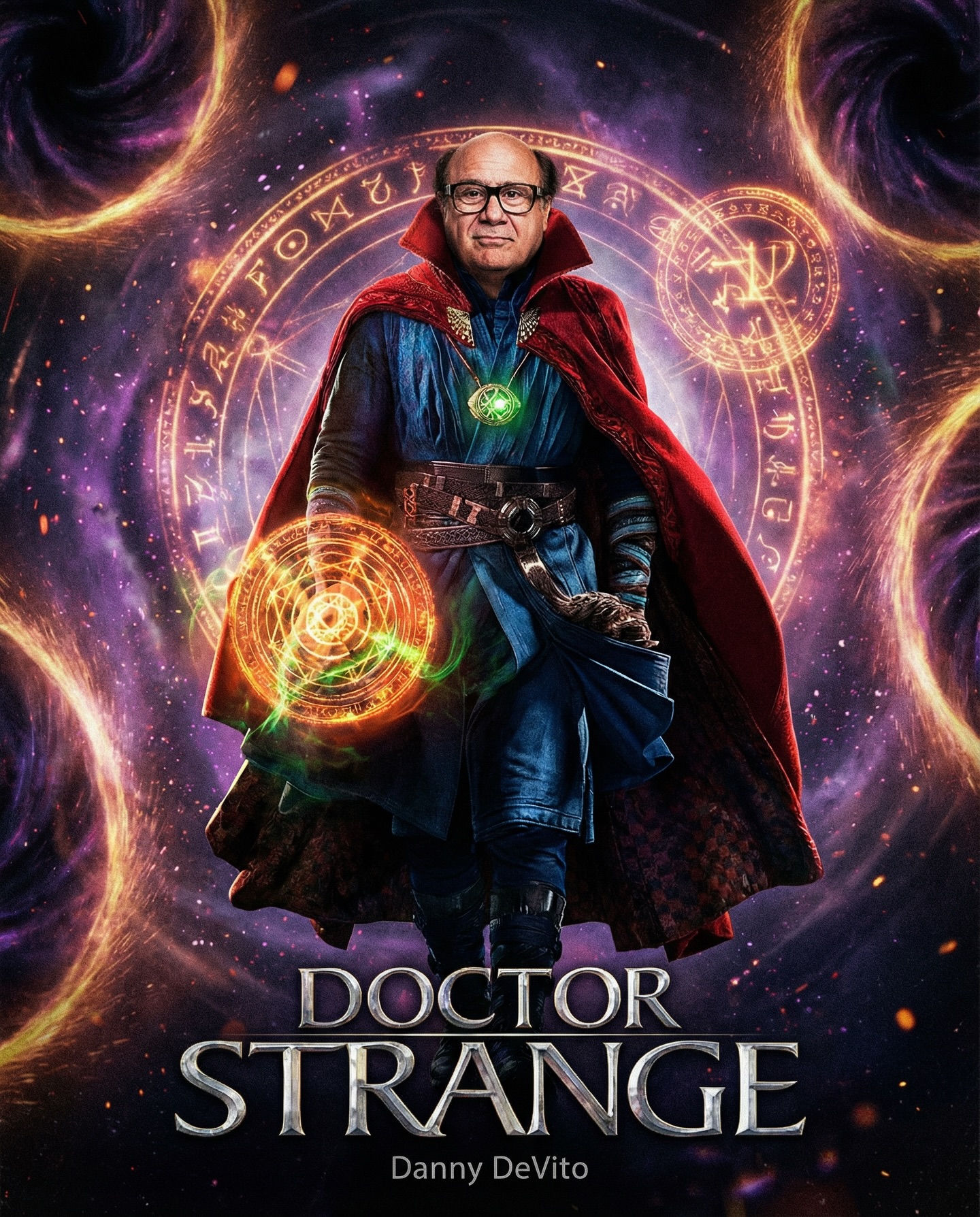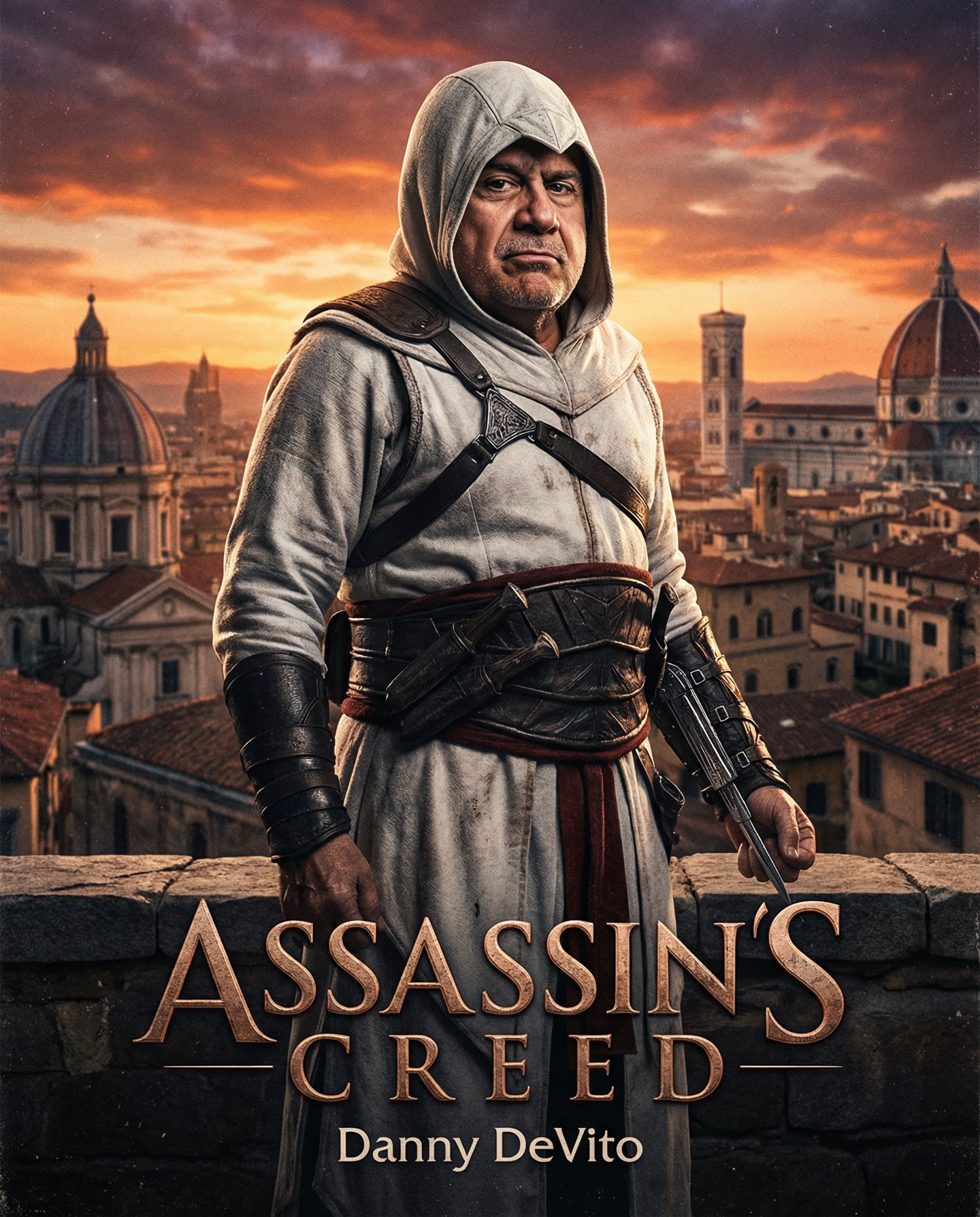 Another reason it works is contrast. Danny DeVito brings a very different physicality than the tall, wiry version people expect. That mismatch creates novelty, while the polished poster execution makes the novelty feel intentional instead of random.
