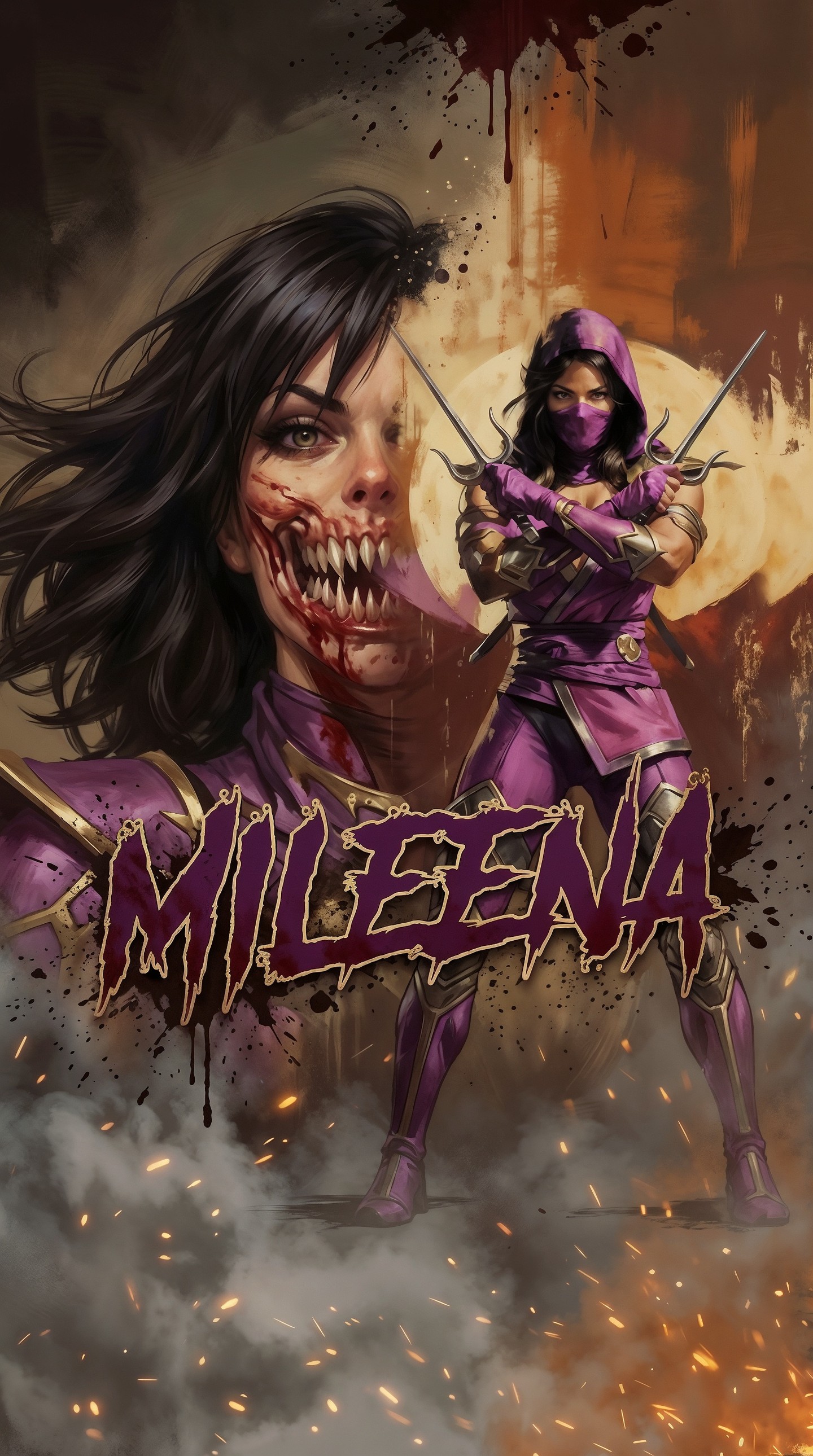 | Character identity | Hood, skull mask, amber eyes, ninja armor | Iconic design markers make the fighter immediately recognizable | Preserve signature silhouette and facial masking details |