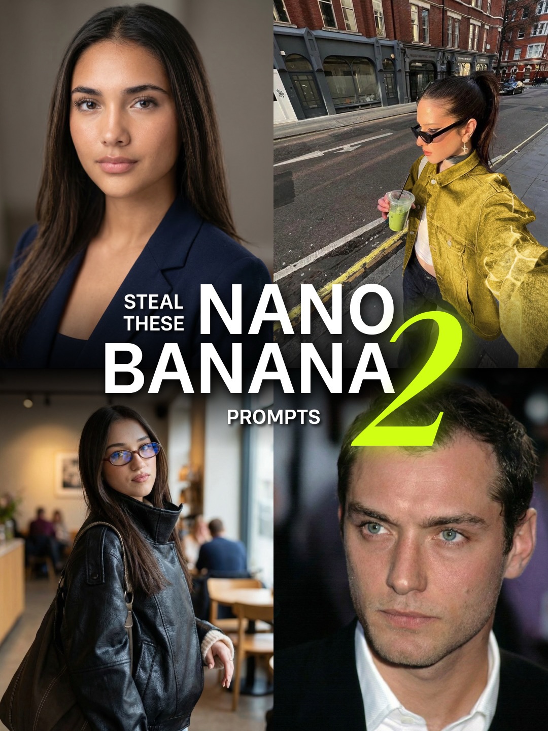 | Inset source selfie | Turns the image into a transformation proof piece rather than a generic headshot sample. |