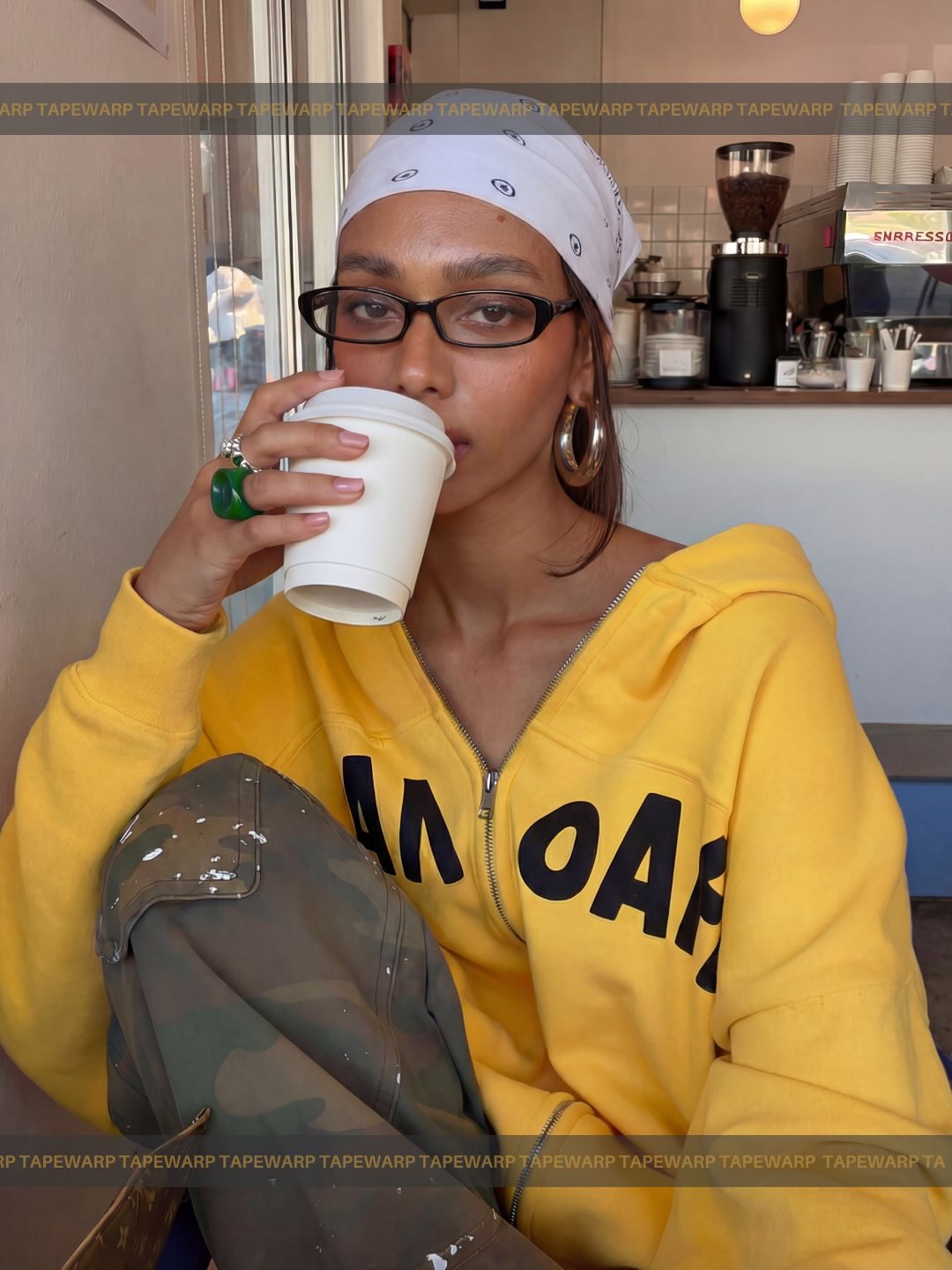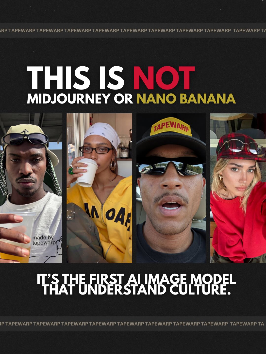 The visual intelligence here comes from contrast. The black poster frame creates seriousness and focus, which makes the everyday portraits inside feel more elevated. Without the black surround and typography, these images would read as casual internet snapshots. Inside this container, they become references. Framing is doing the value upgrade.